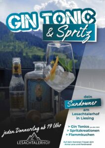 In den Sommermonaten freuen wir uns, Dich zu unserem Gin & Tonic & Spritz Abend zu begrüßen. Immer wieder Donnerstags ab 19.00 Uhr.