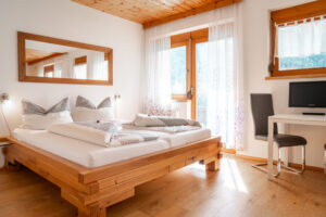 In unserem Familienzimmer findest du ein gemütliches 1,80 x 2,00m Doppelbett sowie ein Stockbett für zwei Personen. Solltest du ein Babybett benötigen bietet das Zimmer ausreichend Platz. Ein eigener Kühlschrank im Zimmer bietet Platz für Lebensmittel oder kühle Getränke. Wlan steht dir kostenfrei zur Verfügung, das Zimmer ist ausgestattet mit einem TV, das moderne Badezimmer hat eine Dusche, es steht dir natürlich auch ein Föhn zur Verfügung.