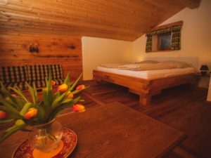 Eine Hütte ganz für Euch klingt nach Deinem Geschmack? Unsere liebevoll eingerichtete Hütte steht an unserer Grundstücksgrenze, du hast einen eigenen Grillplatz, eine vollausgestattete Küche & kannst mit bis zu 6 Personen nächtigen. Urig, gemütlich aber dennoch komfortabel, mit einem Badezimmer & einem zusätzlichen WC habt ihr genug Platz, ein Schlafbereich befindet sich im „Dachstuhl“ der Hütte, im Wohnbereich befinden sich zwei weitere Einzelbetten. Komplettiert wird die Hütte mit einem angrenzendem Doppelzimmer mit einem eigenen Badezimmer.